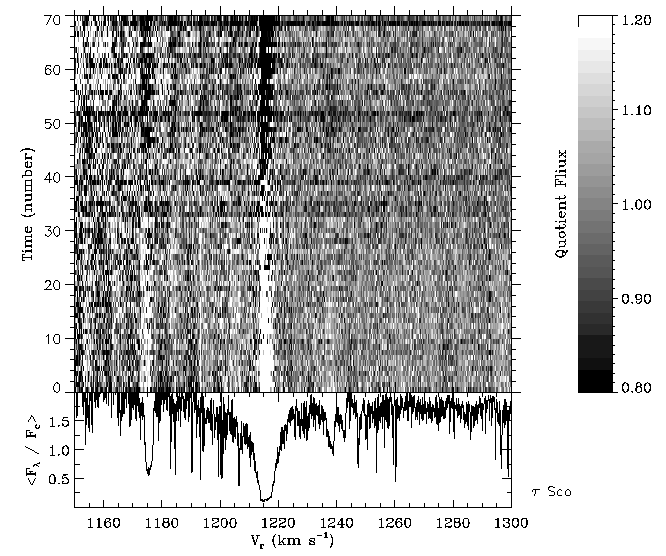 are normalized by their mean spectrum. The temporal ordinate is simply